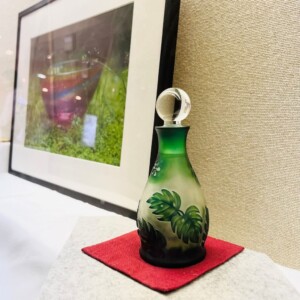 09Mar2025 2月4日から28日まで東京療院で展示会を開催しました 品川駅から徒歩5分くらいに在る東京療院をご存知でしょうか。 熱海のMOA美術館を作られた岡田茂吉先生の理念のもとに建設された建物で、その理念が隅々にまで息づいている世界を体感できます。品川、ビルの立ち並ぶ都会のど真ん中に癒しの空間が存在しているのです。 こちらで浄化療法と、光輪花(独特の理念の元での生花)を学ばせていただくようになって、一年。広々と気持ちが解放され自然体になれる感覚を毎回いただける、楽しみな時間です。 東京療院は、全体が清浄なクリアな空間で、スタッフの皆さんも、とっても気持ちの良い方々で、いつもこの空間の清浄さはどこから来るのだろうか、と思っていました。 いや〜説明が長くなりました。 事務長さまから有難いご提案をいただいて、先月2月4日から28日まで、こちらで展示会を開催させていただきました。(今回の、この展示会は来館者の皆さまの為のクローズドの展示会でした。) いつもの広い空間での展示会と違って、ガラスケースの展示スペースでの展示会でした。 どう、作品を見せるか、作品をどう組み合わせるか、今回は山田さんの写真とのコラボ、と。 初めて尽くしで、流石に考えました。考えなくてはならないテーマをいただけるのは、いつも有難い!又、次のフェーズに誘っていただけます。 本館一階のギャラリーと新館三階の芸術ルームのガラスケース、その二箇所での展示。 本館一階のギャラリーでは、山田さんの写真がその場を一気に、神仙郷の世界に引き込んでくれました。山田さんの写真が、作品の持つエネルギーを増幅させて下さり、展示ケースの中の作品達の存在感がいや増していました。 そのガラスケースに、「夢祓え」と漆蒔絵を施した酒盃を飾らせていただきました。 「夢祓え」が、これまでで最高に誇らしげにみえました、有難いことです。 新館の芸術ルームの展示ケースの中に並んだグラス達も、生き生きと喜びに輝いているようでした。 この様な機会をいただけて、本当に感謝!です。 一ヶ月弱の展示でしたが、東京療院の皆様の温かい心尽くしの対応で、沢山の方々に作品達をお披露目できて、アヒルクサ文字をご紹介することも出来ました。 写真から、展示会の雰囲気を感じていただけたら、幸いです。 東京療院については、 ぜひホームページをご覧下さい。 ▼東京療院のHPはこちら 東京療院 https://tokyoryoin.net/ Share RSS 『メビウスの目(宝船の回文)』 2025年08月12日配信 鳥越アズーリFM シンシキ4 悠里江のハッピー人生にゲスト...